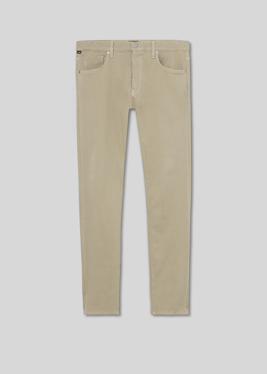 Looks Like: Light khaki, clean five pocket midweight twill
