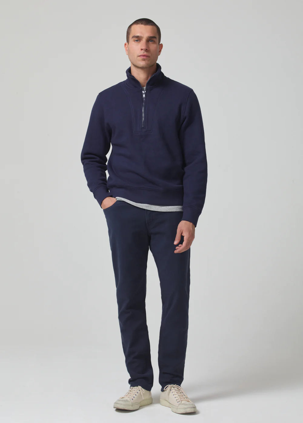 Our slim straight. The Adler offers a slightly higher rise. Fits full through the waist and thigh with a small taper from the knee down.