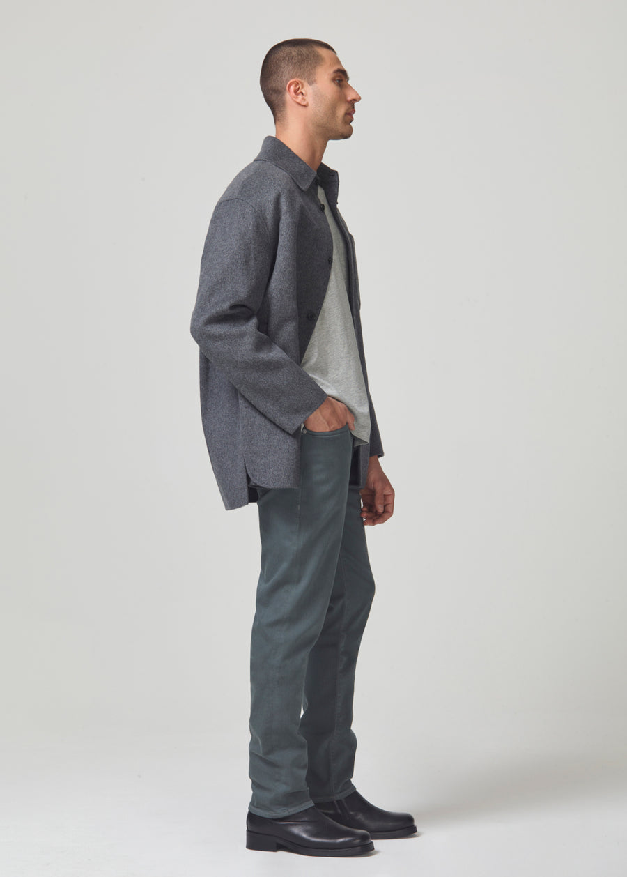 Our slim straight. The Adler offers a slightly higher rise. Fits full through the waist and thigh with a small taper from the knee down.