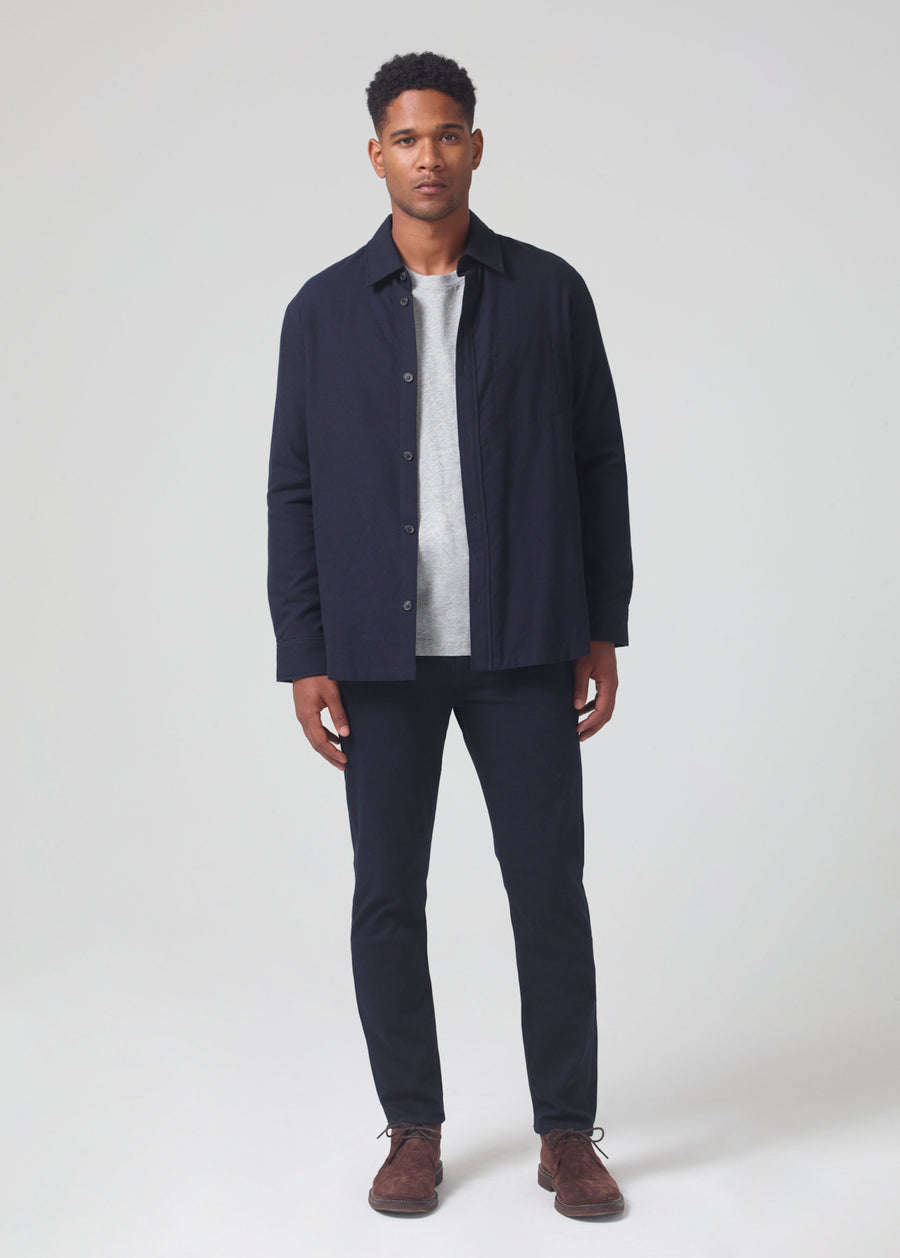 Our slim straight. The Adler offers a slightly higher rise. Fits full through the waist and thigh with a small taper from the knee down.
