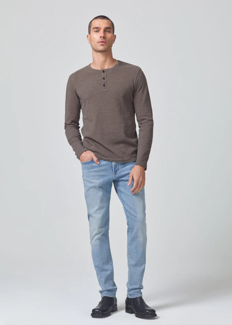 Our tapered slim. The London fits fuller in the thighs and tapers to the ankle. Our top selling slim fit, in our high stretch perform denim.