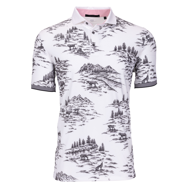 The Wolf Toile Polo revisits a signature Greyson print for the modern lifestyle. Constructed with a poly-blended fabric for superior performance, this printed golf polo is designed to provide elevated comfort and freedom of movement on and off the golf course. Finished with a three-button placket, banded sleeves, and a pique collar.